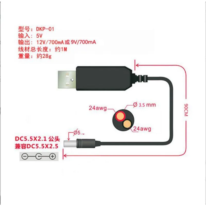 Comprar Módulo de Cable elevador USB DC 5V a DC 9V 12V, Cable adaptador convertidor de línea de refuerzo de energía USB, enchufe de 5,5x2,1mm