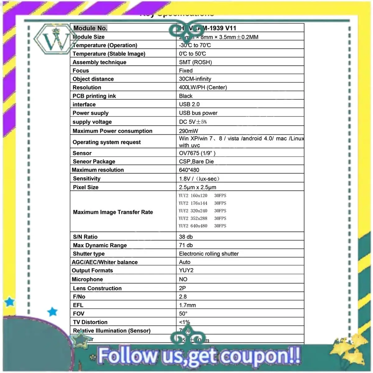 3.Chip del producto: OV7675 (1/9 pulgadas)