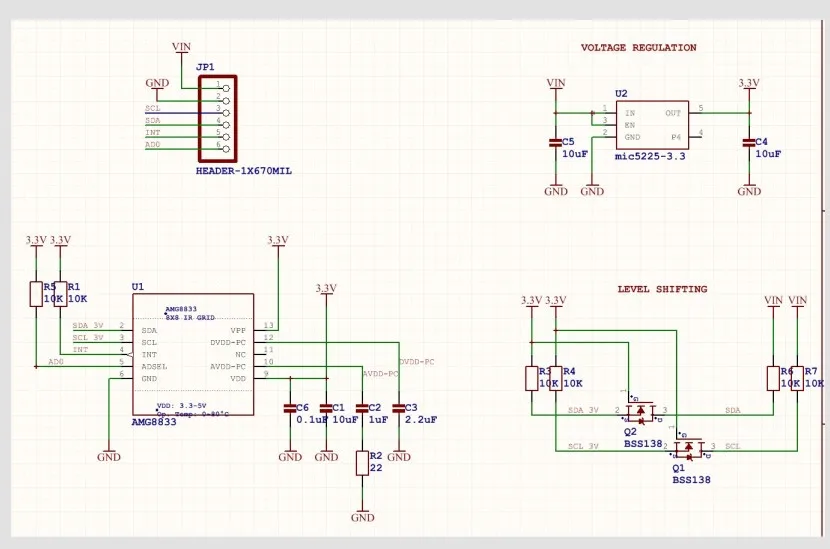 AMG8833 IR 8*8 MLX90640 Módulo de cámara 32*24 Imágenes térmicas Sensor de matriz de puntos termométrico de temperatura 8x8 32x24 infrarrojo MLX90640BAA MLX90640BABAMG8833 8*8Descripción del producto:1.El sensor de cámara infrarroja AMG8833 es un conjunto de sensores térmicos infrarrojos de 8x8.Cuando se conecta a su microcontrolador (o Raspberry Pi), devolverá un conjunto de 64 lecturas de temperatura infrarrojas individuales a través de I2C.Es como esas elegantes cámaras térmicas, pero son compactas, simples y fáciles de integrar.El AMG8833 ofrece un rendimiento superior al AMG8831 anterior.El sensor solo admite I2C y tiene un pin de interrupción configurable que se puede activar cuando un solo píxel está por encima o por debajo del umbral establecido.2.Puede detectar humanos desde una distancia de hasta 7 metros (23) pies.Es perfecto para crear su propio detector humano o minicámara.Utilizamos este código innovador en Arduino o compatible (el sensor se comunica a través de I2C) o en Raspberry Pi de Python.En el Pi, gracias a la ayuda de procesamiento de imágenes de la biblioteca de pitones SciPy, podemos insertar una cuadrícula 8x8 y obtener muy buenos resultados.Parámetros del producto:1.Precisión: + - 2,5°C (4,5°F).2.Velocidad máxima de fotogramas: 10 Hz,3.Fuente de alimentación: 3~5V4.Rango de medición de temperatura: 0°C a 80°C (32°F a 176°F)