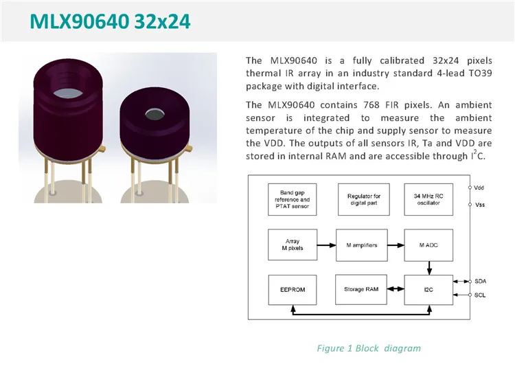Se conserva la interfaz I2C original de mlx90640 y el chip del sensor puede ser operado directamente por una MCU externa (PS está conectado a GND).