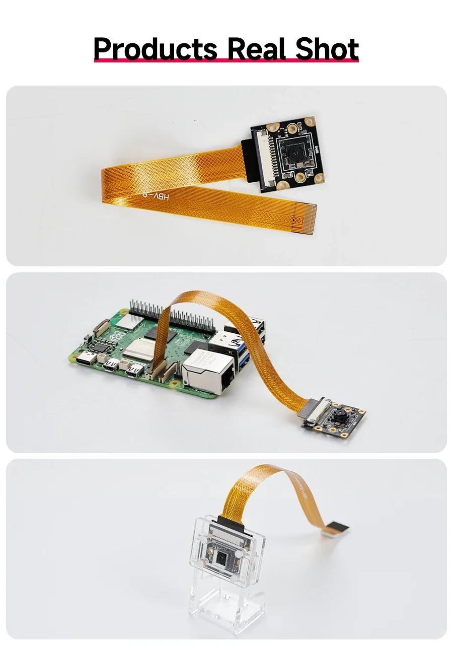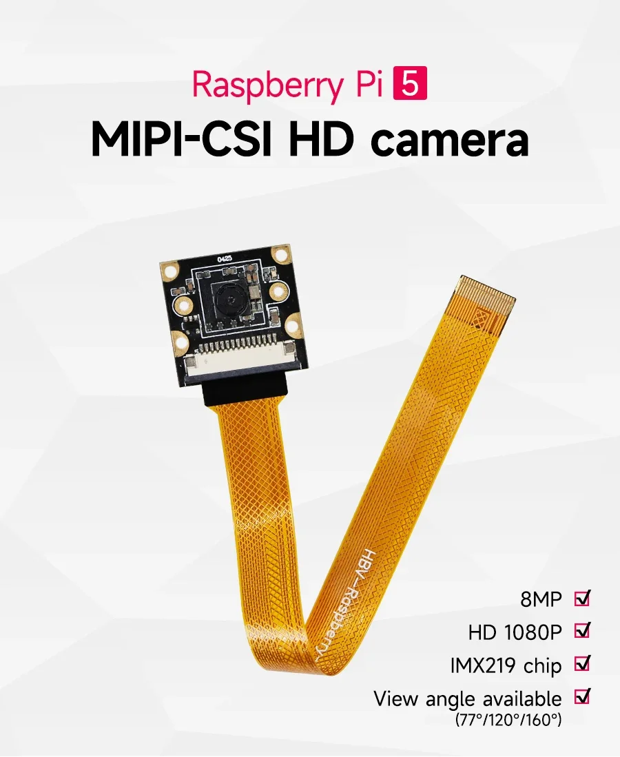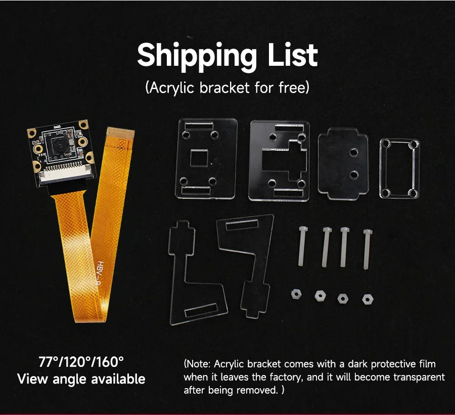 Módulo de cámara Raspberry Pi 5 con chip IMX219 de 8MP 77° 120° 160° FOV para elegir con soporte acrílico de alta calidad Cable FPC de 22 pines