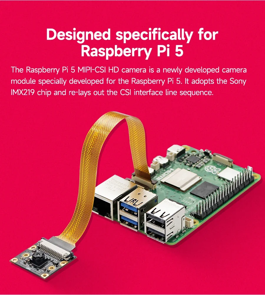 Esta cámara es un dispositivo de adquisición de imágenes de alto rendimiento especialmente diseñado para Raspberry Pi 5.Utiliza chip Sony IMX219 con 800W de píxeles.Tiene excelentes efectos de disparo, capaces de capturar imágenes claras y detalladas.Debido a su tamaño compacto y diseño liviano, es un dispositivo ideal para sistemas integrados, visión artificial y campos de drones.
