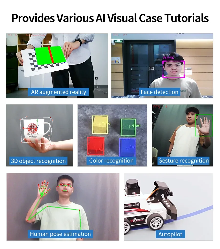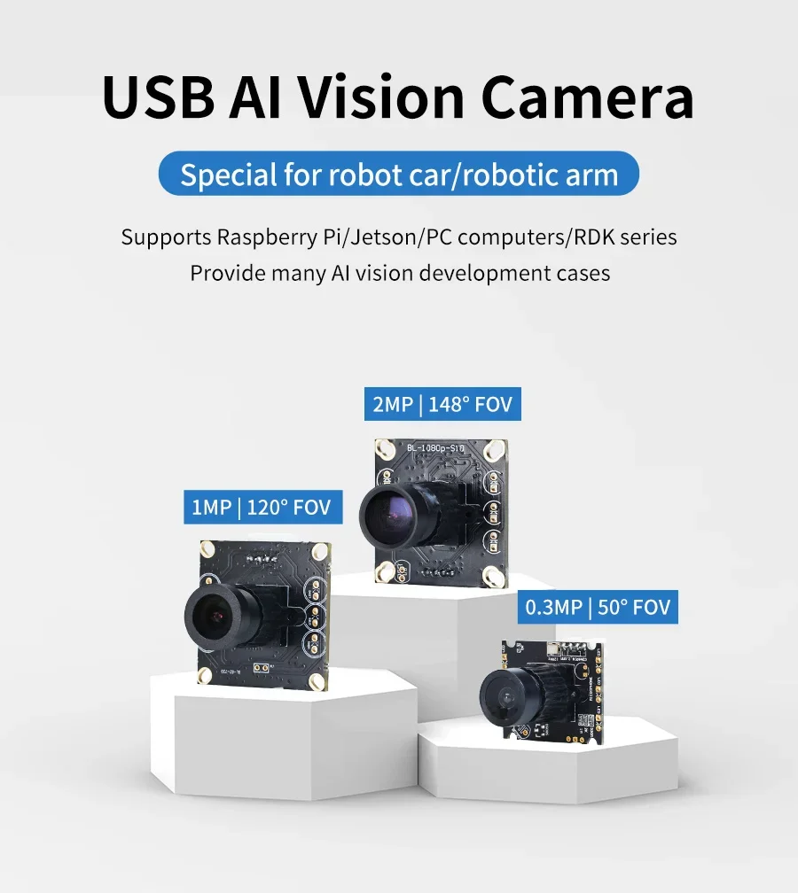 Las cámaras USB Yahboom son adecuadas para placas de desarrollo Raspberry Pi 5/4B/Pi 400, serie RDK y serie Jetson.No necesita ningún archivo de controlador, simplemente conéctelo a la interfaz USB y se reconocerá automáticamente y funcionará normalmente.Pequeño y liviano, se puede llevar a cualquier lugar, una herramienta ideal para trabajar desde casa, aprendizaje a distancia y comunicación.Combinando automóviles inteligentes o robots programables, se pueden completar algunos proyectos de reconocimiento visual de IA y conducción autónoma.Yahboom ofrece muchos tutoriales y códigos fuente basados en el sistema ROS.