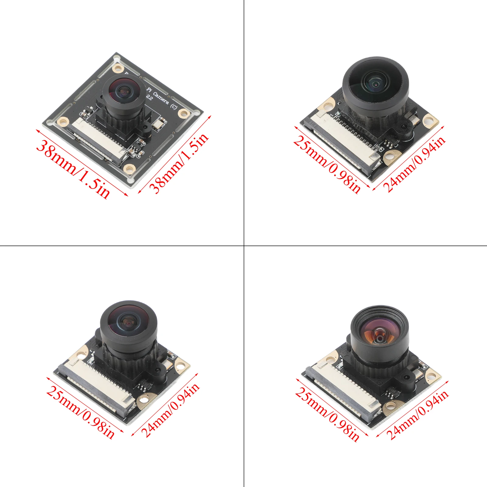 Raspberry Pi Day/Night Vision 5MP Wide Angle HD Webcam Module with Adapter Cable for Raspberry Pi 5B/4B/3B+/3B/2B/Zero W/Zero