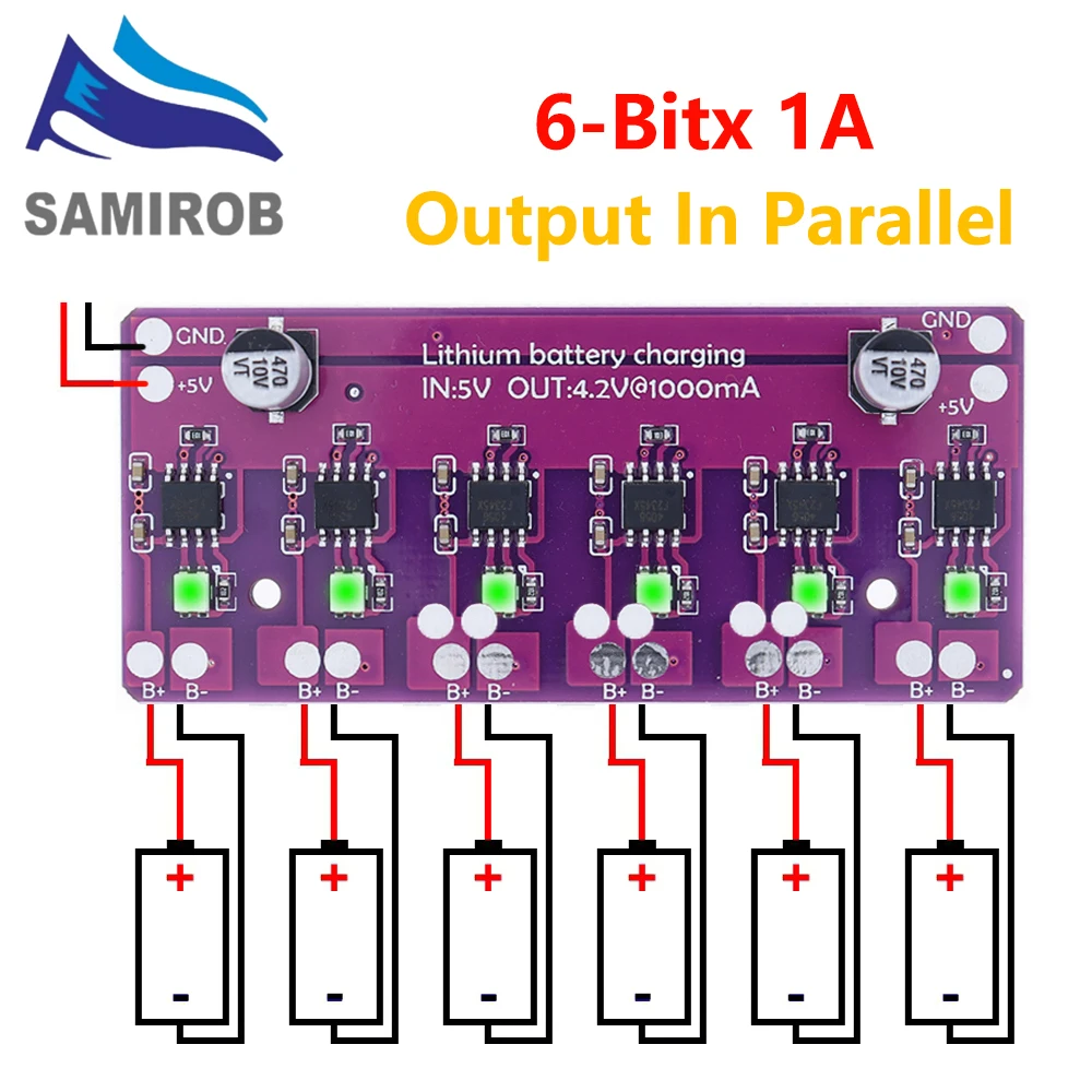 2.Módulo de carga de batería de litio 4056 independiente 6 grupos en paralelo, cada salida 1000ma