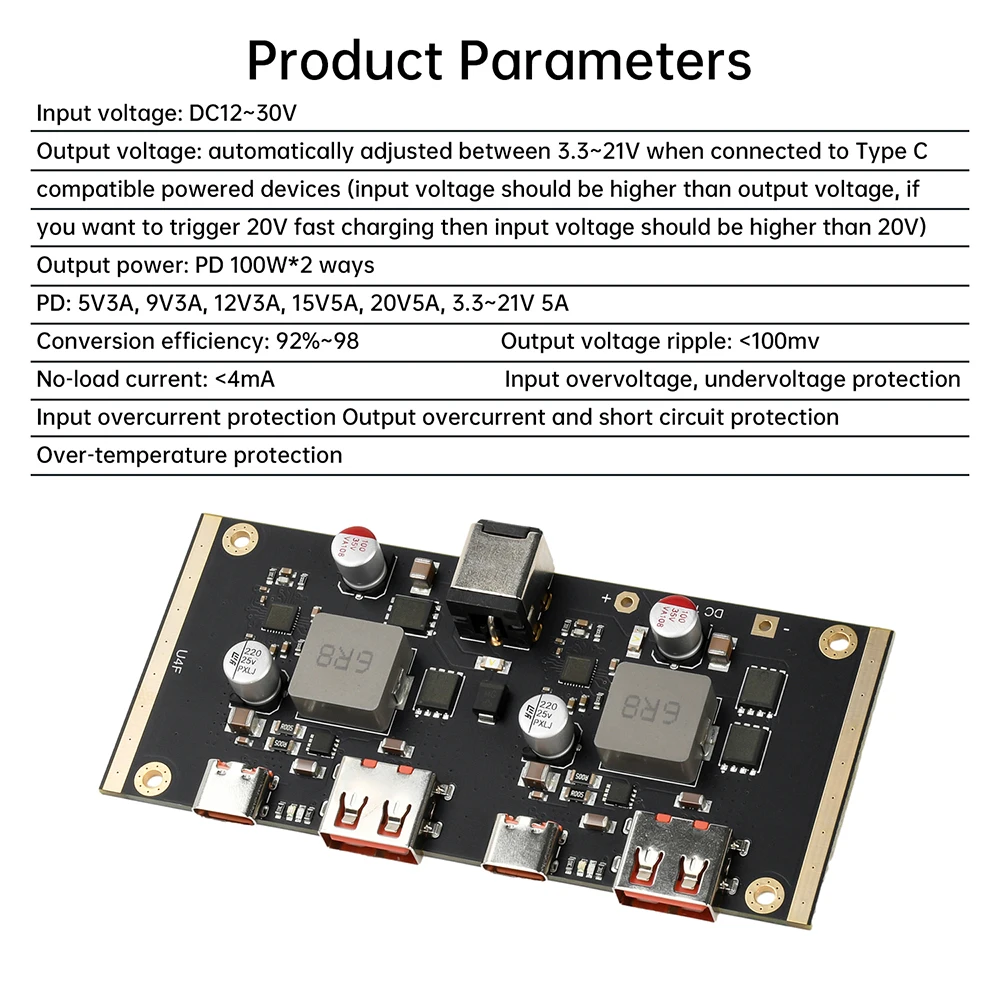 PD: 5V3A, 9V3A, 12V3A, 15V5A, 20V5A, 3,3~21V 5A