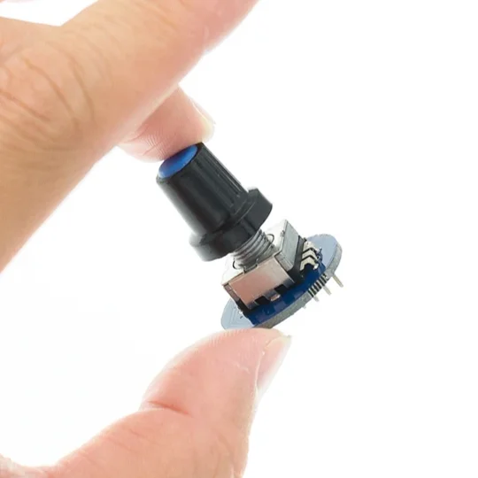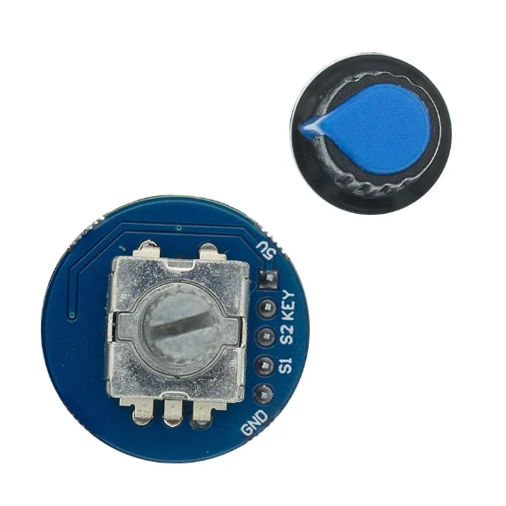 El codificador rotatorio se puede girar para contar el número de pulsos emitidos durante la rotación hacia adelante y hacia atrás.A diferencia de los potenciómetros, no hay límite para el número de rotaciones que se pueden contar.Con la tecla del codificador rotatorio, se puede restablecer al estado inicial, es decir,contando desde 0.