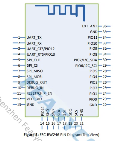 Módulo combo inalámbrico, BT + Wi-Fi, 2,4 GHz, ESP32, FSC-BW246