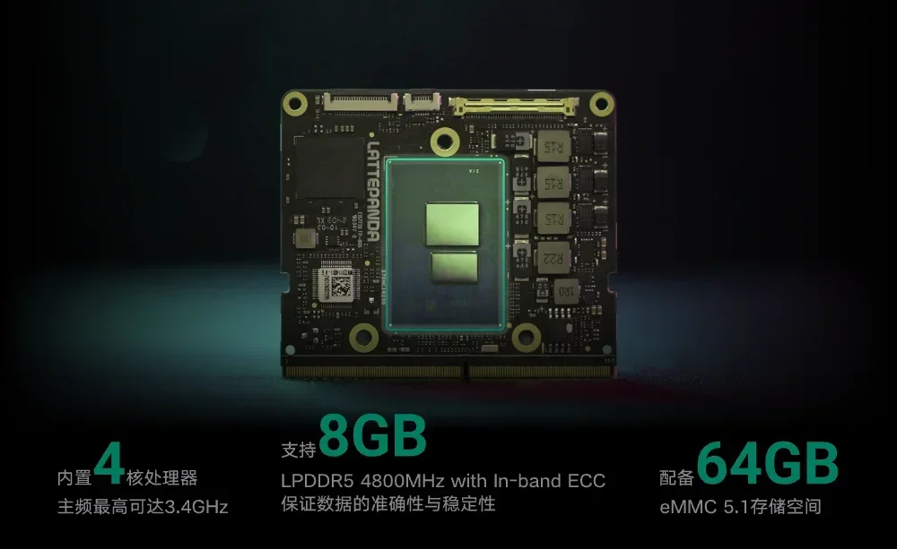 LattePanda Mu es un módulo de computación micro x86 que incluye procesador Intel N100 de cuatro núcleos, memoria LPDDR5 de 8 GB y almacenamiento de 64 GB.LattePanda Mu expone pines extensos, incluidos 3 HDMI/DisplayPort, 8 USB 2.0, hasta 4 USB 3.2 y hasta 9 carriles PCIe 3.0.Estos puertos flexibles y los archivos de la placa operadora de código abierto permiten a los usuarios diseñar sin esfuerzo tableros operadores personalizados para cumplir con sus requisitos únicos.