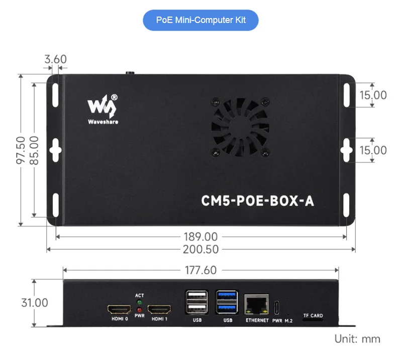 Módulo de computación de placa IO CM5 5 Lite/eMMC con función PoE para Raspberry Pi opcional con estuche