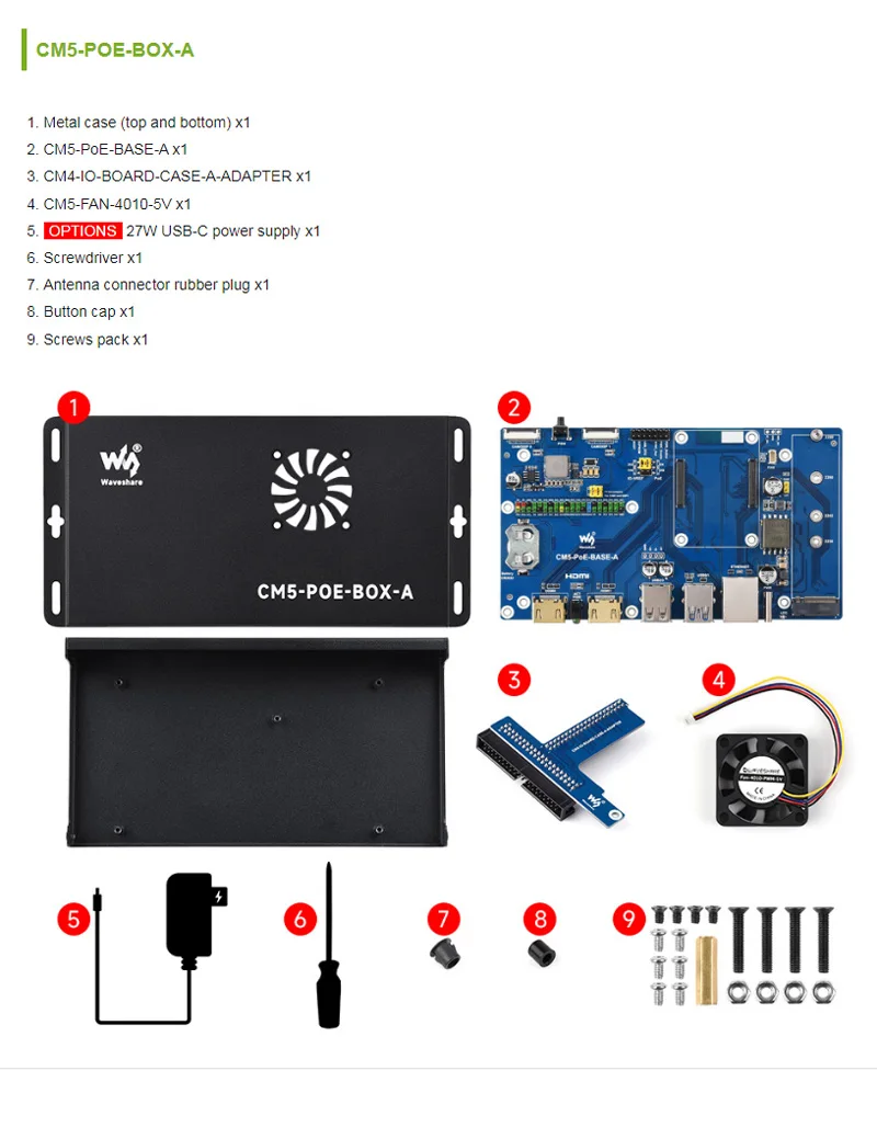 Comprar Módulo de cómputo de placa de expansión CM5 IO 5 con función PoE opcional con estuche para Raspberry Pi