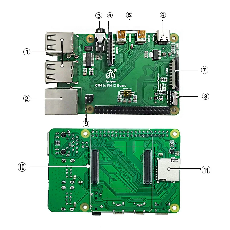 Nota: 1.NoIncluye Raspberry PiCM4Y Raspberry Pi4B, Por favorComprar solo.