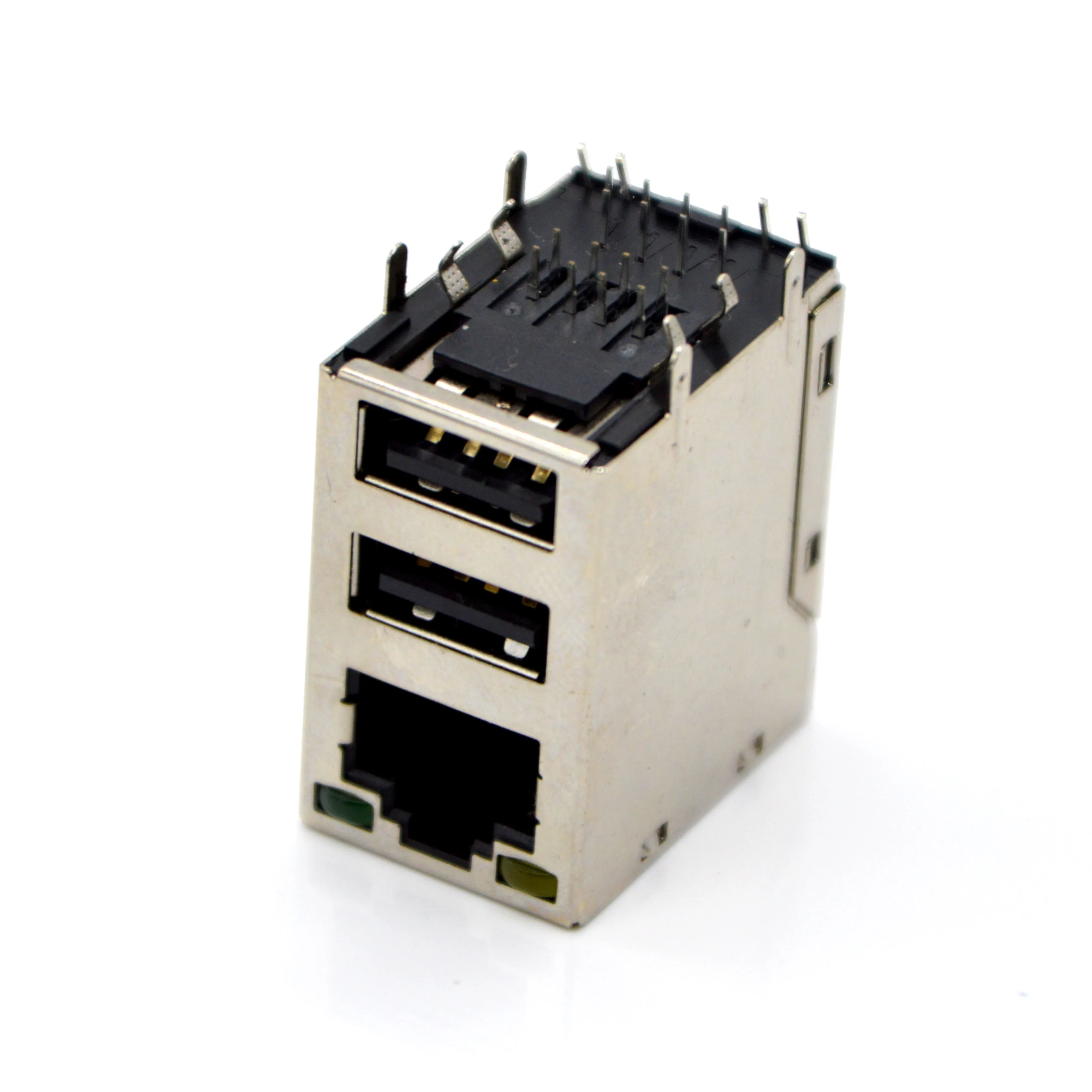 New Network Connector Module Double USB Connector with LED USB + RJ45 Socket For Printed Circuit boards Special Wholesale