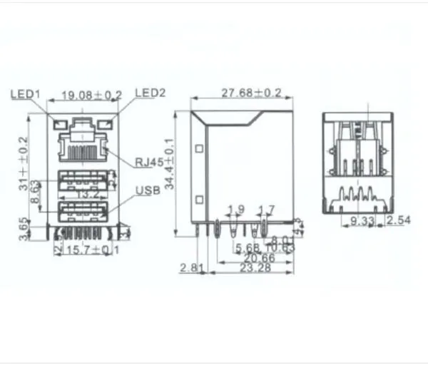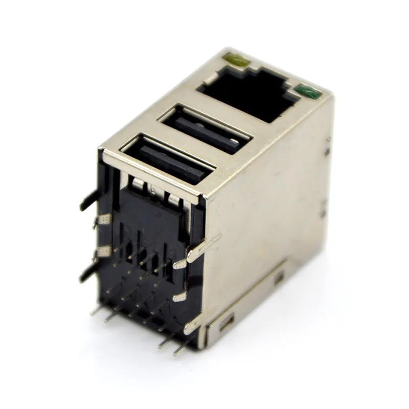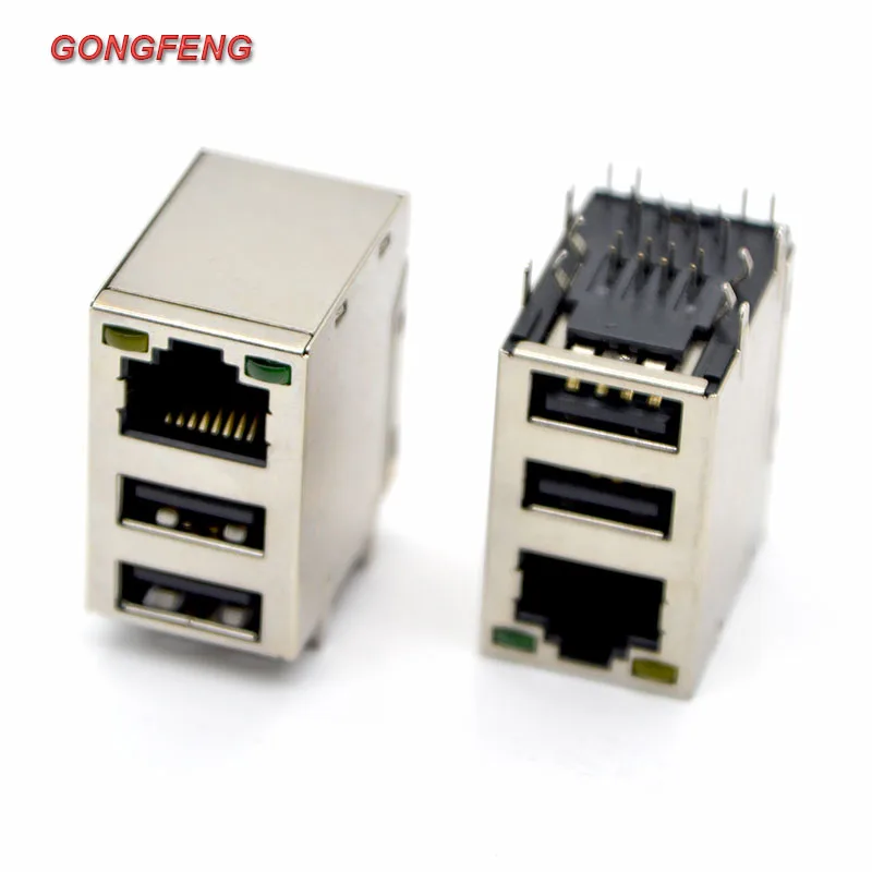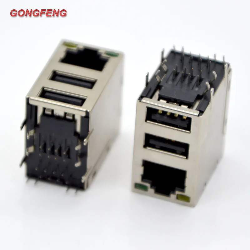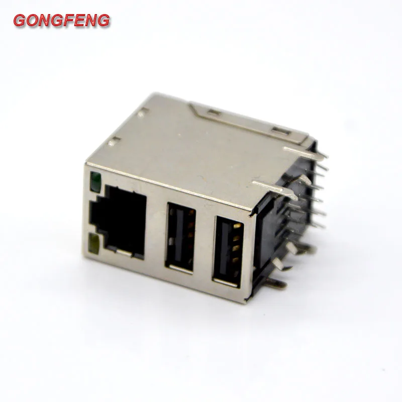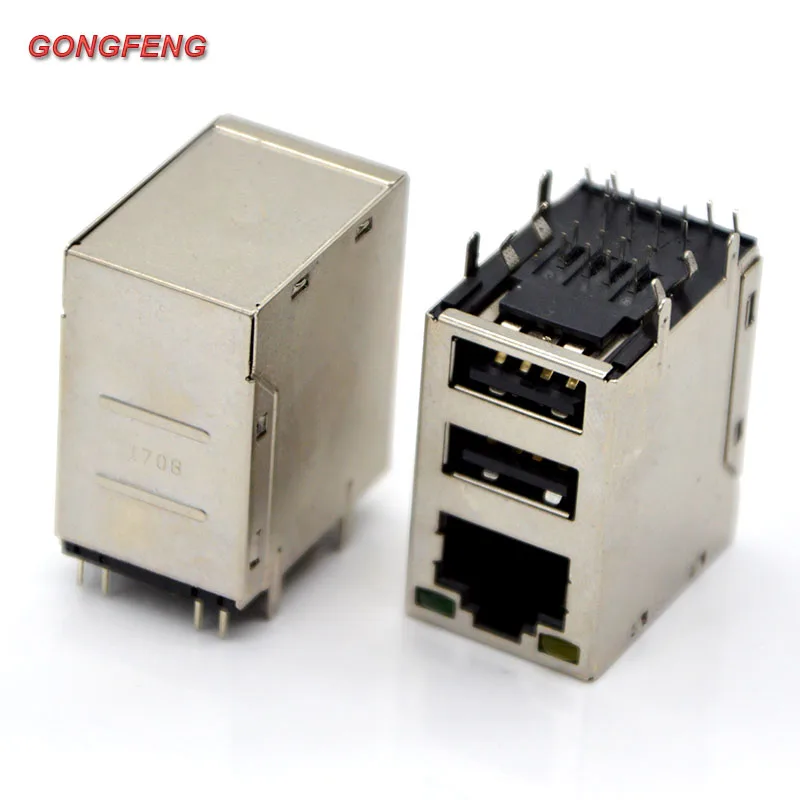 Comprar Módulo de conector de red, conector USB doble con LED USB + enchufe RJ45 para placas de circuito impreso, especial, venta al por mayor, nuevo