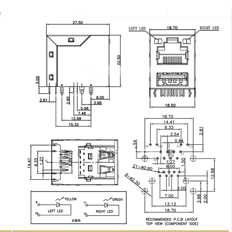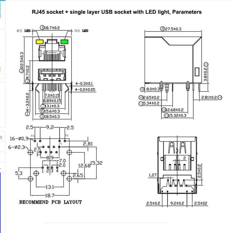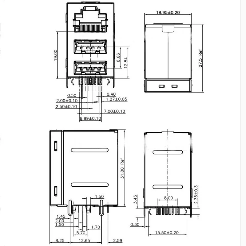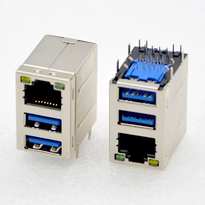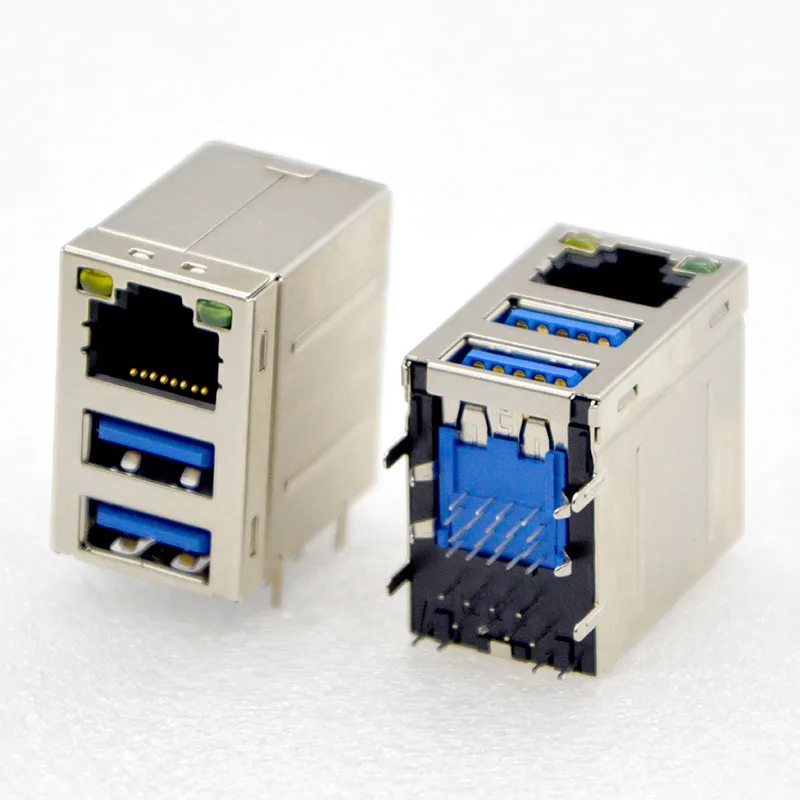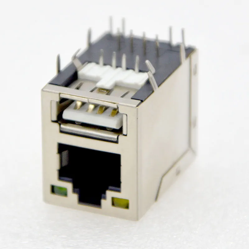 Comprar Módulo de conector de red RJ45, conector USB doble con LED, enchufe RJ45 para placas de circuito impreso, venta al por mayor de fábrica, nuevo