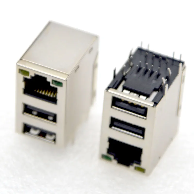 Nuevo Módulo de conector de red RJ45 conector USB doble con LED USB + enchufe RJ45 para placas de circuito impreso fábrica al por mayor