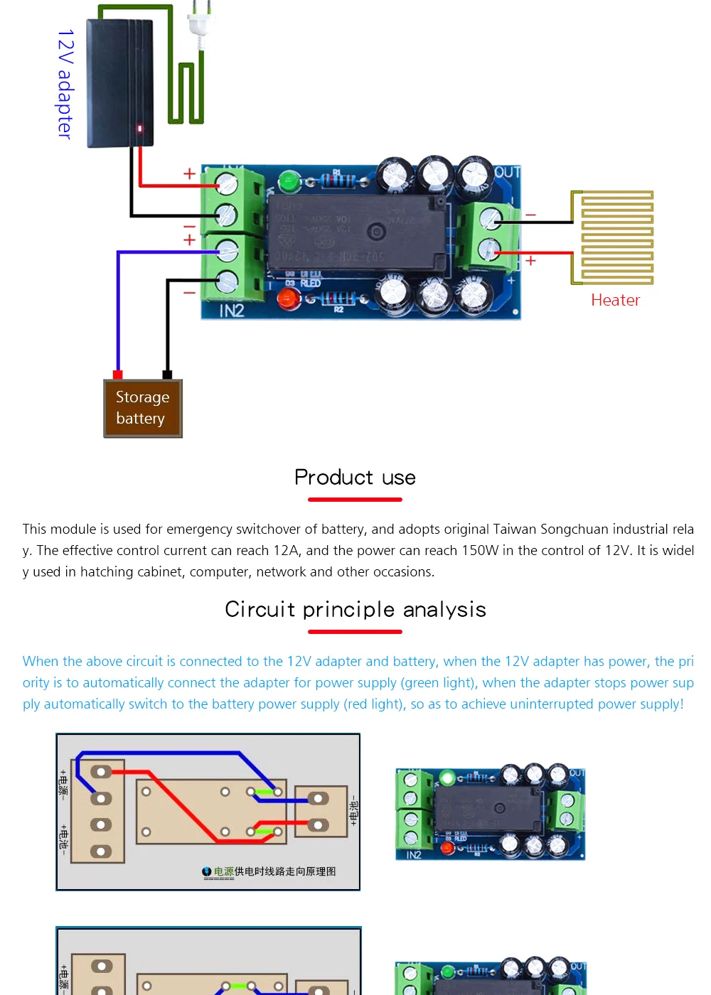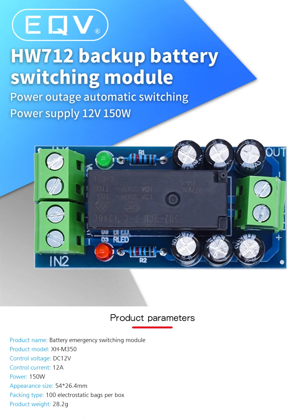 Comprar Módulo de conmutación de batería de respaldo de 12V, 150W, 12A, placa de alta potencia, potencia de batería de conmutación automática XH-M350
