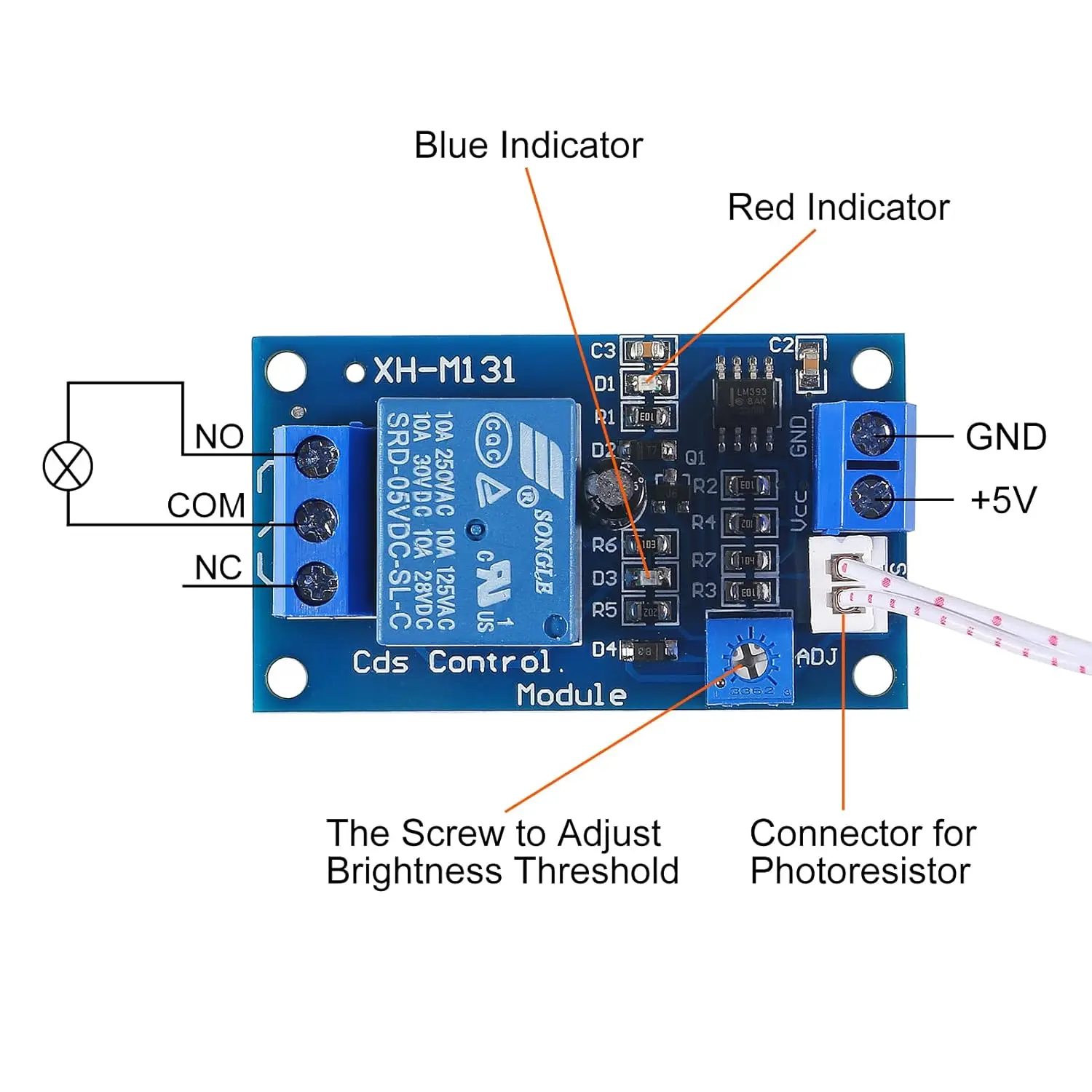 Detección de luz y detección de brillo, la detección se puede ajustar a través del punto de válvula de brillo del potenciómetro viene con relés y hacer todo tipo de interruptores de detección de brillo, puede controlar todo tipo de farolas que se encienden automáticamente por la noche, durante el día y se apagan automáticamente y el automóvil suministros de equipos de control y automatización.