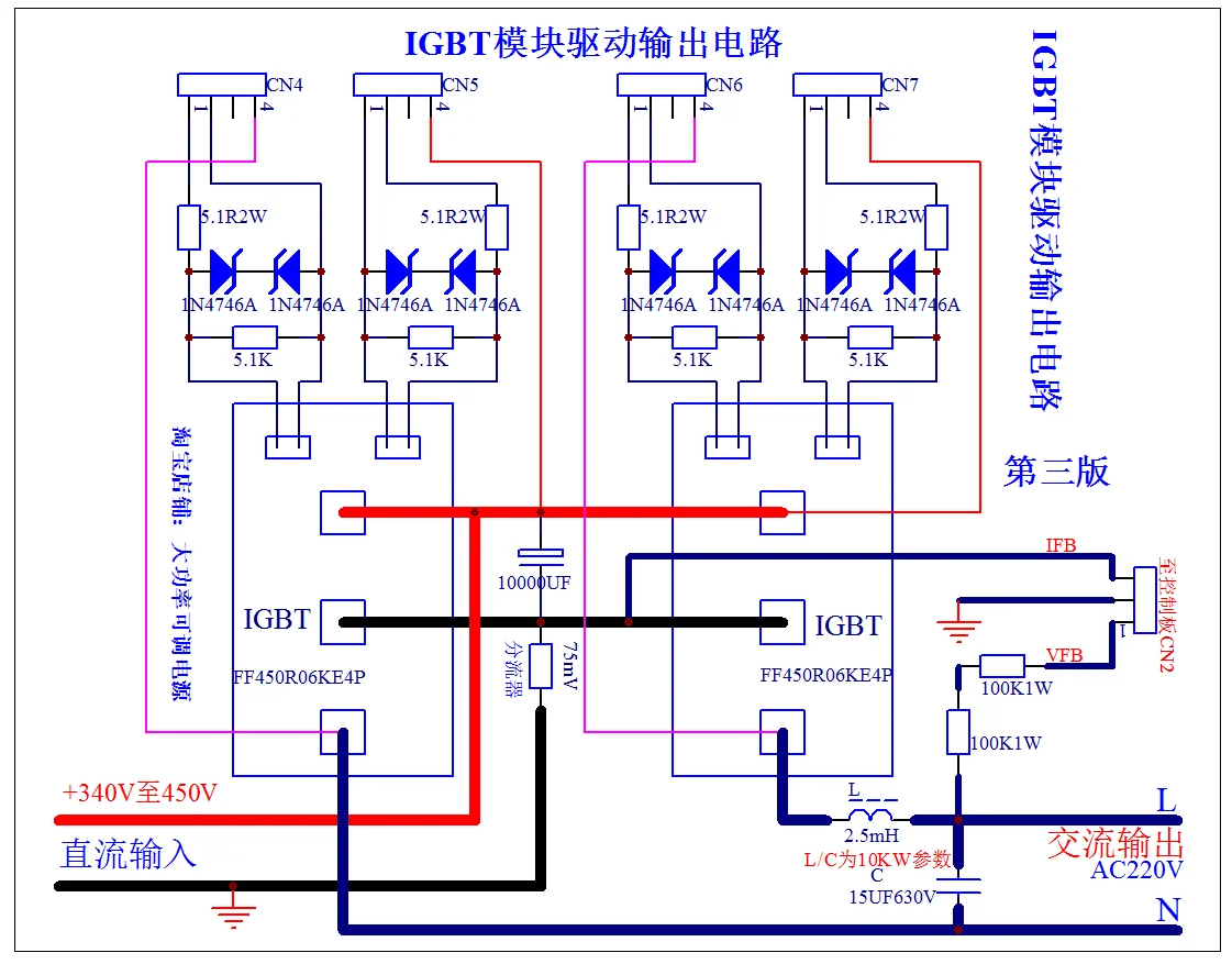 La Placa de controlador de control del módulo IGBT de alta potencia de onda sinusoidal es en realidad la parte trasera de CC a CA del inversor, que convierte la corriente continua de alto voltaje de la etapa frontal en un dispositivo de salida de CA 220V.