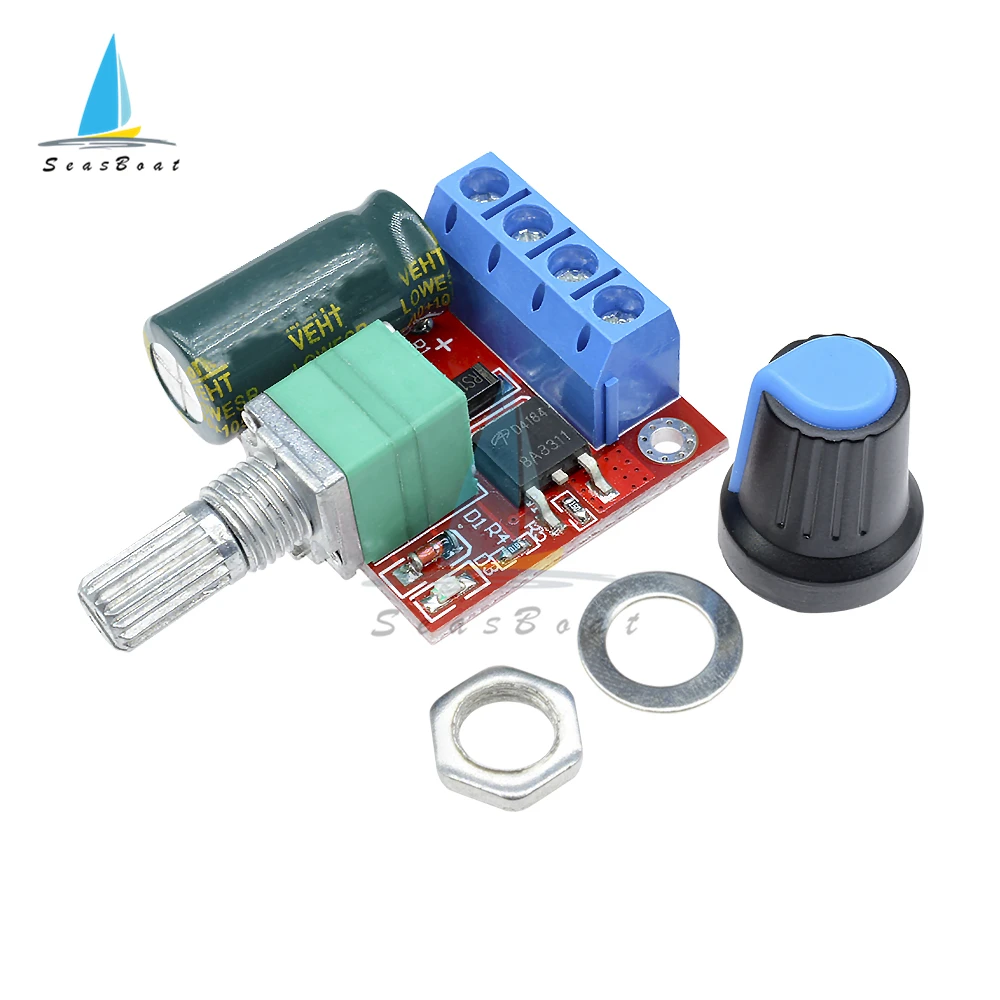 Especificaciones:Voltaje de funcionamiento:Corriente de salida: 0-5APotencia de salida: 90W (máx.)Corriente de reposo: 7uA (en espera)Ciclo DE TRABAJO PWM: 1% -100%Frecuencia PWM: 20kHzTamaño: 30mm x 26mm x 14mm (sin mango)Precauciones:La entrada del regulador del motor DC es DC, no se puede conectar directamente a AC (por ejemplo: Home 220V AC), ¡De lo contrario se quemará!Los terminales positivo y negativo de la fuente de alimentación de CC no se invierten, de lo contrario el regulador puede dañarse.El motor puede ser positivo o negativo, cuando la dirección de operación y las expectativas no coinciden, puede ajustar el orden de la línea para cambiar la dirección.Ajuste la perilla del potenciómetro para cambiar el ciclo de trabajo de salida del gobernador, la velocidad del motor cambia.Paquete incluido:1 x Mini 5A 90W PWM 12V DC módulo controlador de velocidad del Motor 4,5 V-35V regulador de velocidad ajustable interruptor de Gobernador de Control 24V