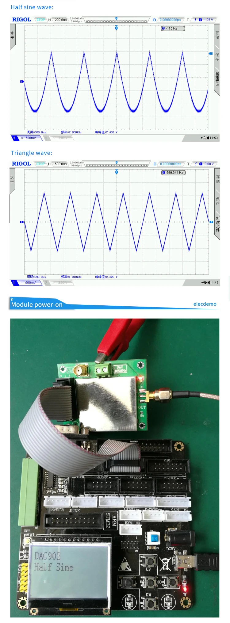 Precauciones para usar el módulo:(1) El módulo es un módulo de bajo consumo de energía y la fuente de alimentación no supera los 5,5 V.(2) Dado que el módulo es un dispositivo de alta precisión, para evitar interferencias innecesarias, se recomienda utilizar una fuente de alimentación lineal.(3) Se recomienda utilizar la interfaz correspondiente SMA para la línea de señal de salida. Es probable que las interfaces no coincidentes causen un contacto deficiente, y los cables de mala calidad pueden causar atenuación de la señal o ruido excesivo.(4) El código entregado solo se utiliza para la placa de control principal de soporte. No se proporciona ningún tutorial de microordenador de un solo chip. Las funciones distintas a la visualización de detalles del producto deben ser desarrolladas por usted mismo.(5) Si necesita simplemente probar la función del módulo, se recomienda usarlo con el tablero de control de nuestra tienda; después del cableado correcto, la placa de control se puede alimentar para lograr la salida de voltaje analógico.