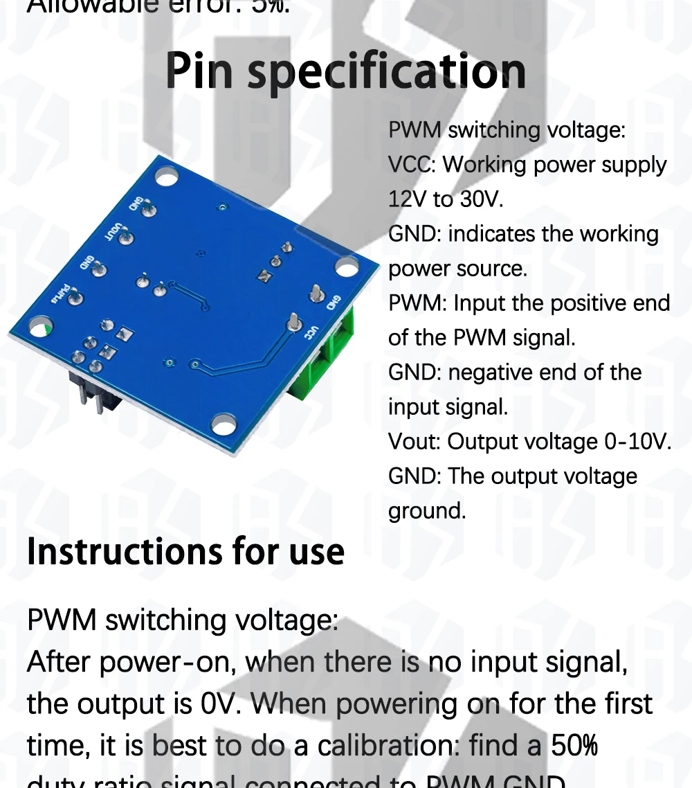 La descripción del producto es INCORRECTA, esto es un convertidor de Voltaje a PWM, no al revés. Perdimos tiempo suficiente esperando el producto equivocado, y ahora el proceso de reembolso solicita más información, fotos, etc. Irrelevante e Insignificante