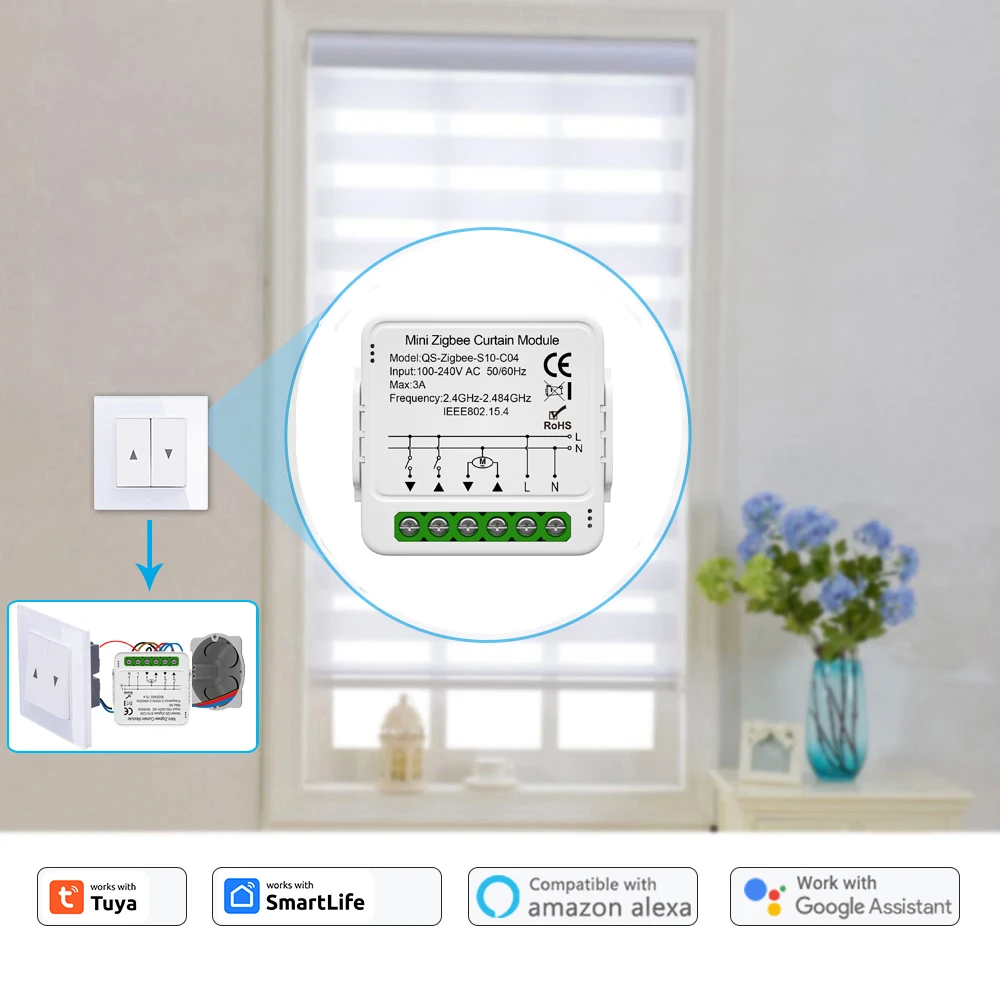 Comprar Módulo de cortina inteligente Tuya WiFi/Zigbee, interruptor de persiana, Motor eléctrico de persiana enrollable conectado, Compatible con Alexa y Google Home