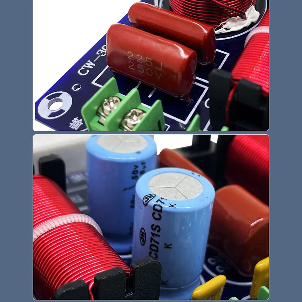 Característica:1. Componentes de alta calidad:El cruce del altavoz cuenta con un circuito de alta frecuencia con condensadores en serie e inductores a tierra, así como un interruptor ajustable que le permite controlar el tamaño del sonido y garantizar un sonido de alta frecuencia claro y brillante.