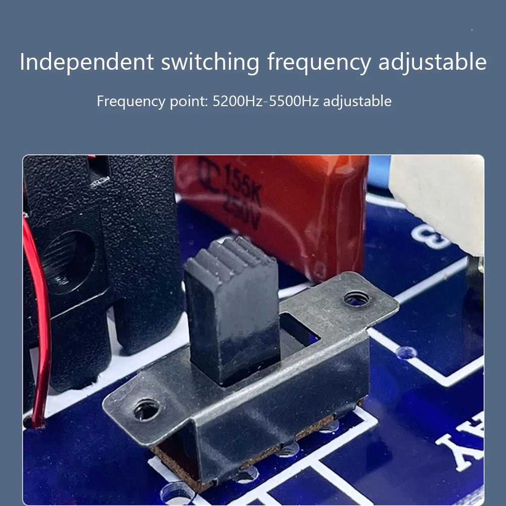5. Puntos de frecuencia ajustables:El módulo divisor de frecuencia del altavoz de Audio cuenta con un interruptor ajustable que le permite ajustar los puntos de frecuencia entre 5200Hz-5500Hz, proporcionando una mayor flexibilidad y adaptabilidad a diferentes tipos de altavoces. Con su resistencia a altas temperaturas y su gran inductancia, El Crossover ofrece una excelente calidad de sonido y evita la resonancia de la música.