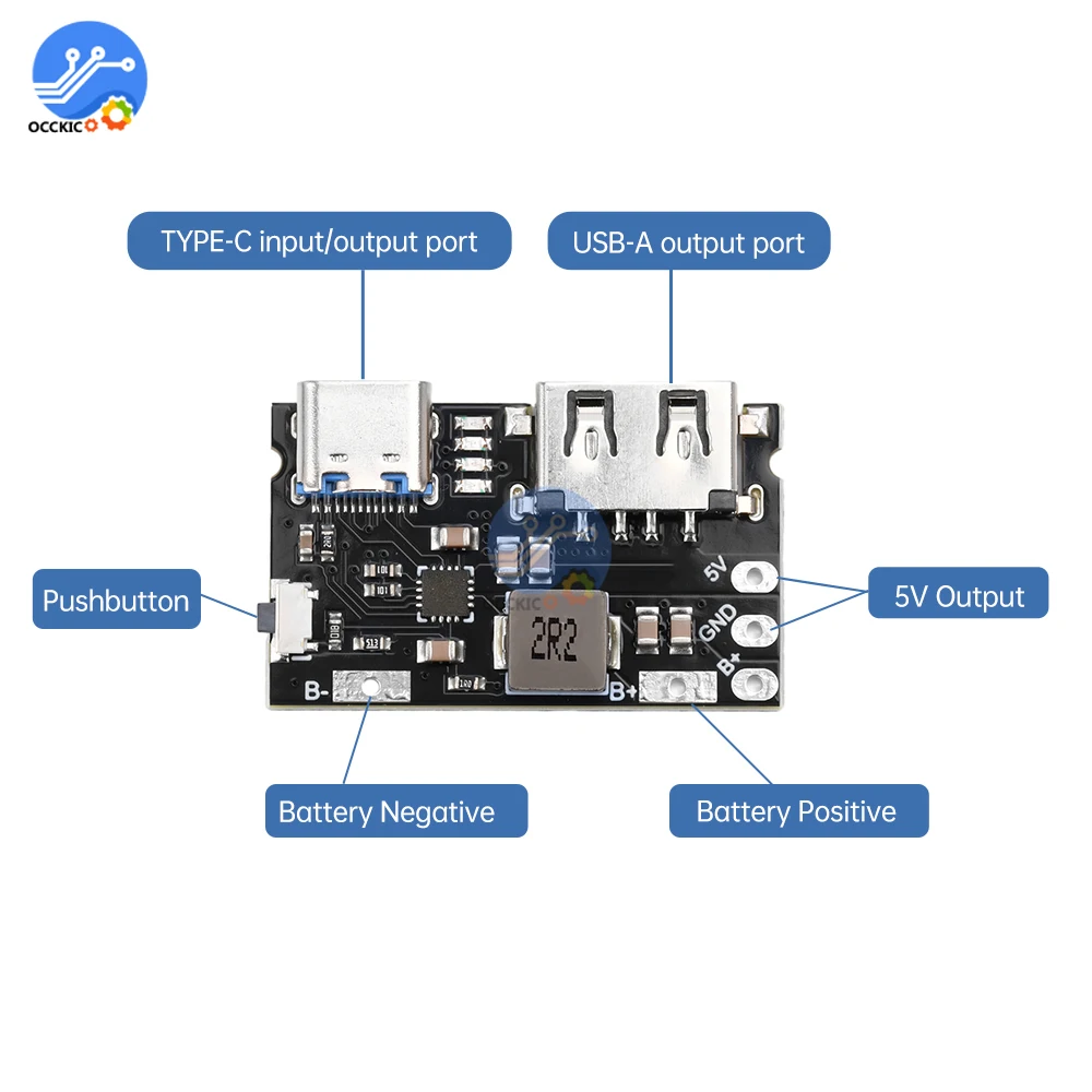 Comprar Módulo descargador de cargador tipo C + USB A, 5V, 2,4a, placa de cargador de batería de litio individual, compatible con carga y descarga