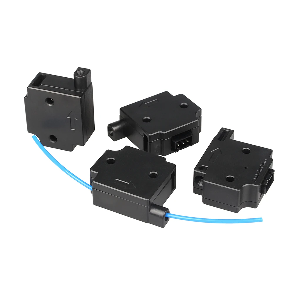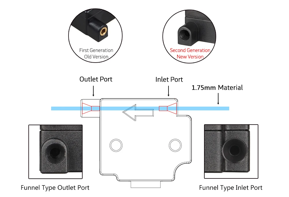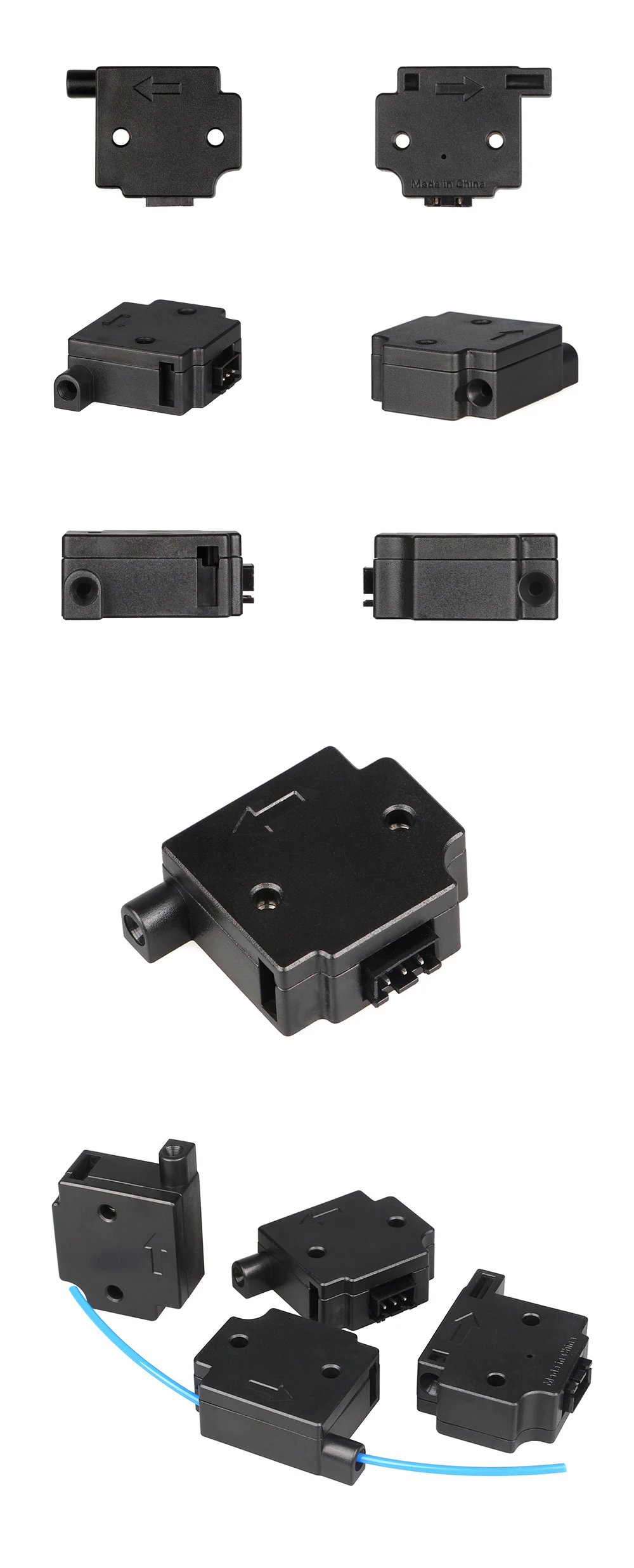 Lista de envío:Módulo de detección de materiales con Cable * 1 JuegoEl Módulo de detección de material de primera generación producido por nuestra empresa es ampliamente utilizado por los fabricantes, clientes de bricolaje y aficionados. Los comentarios son muy buenos. Pero esto también causó plagio ciego en el mercado. Con los comentarios de los clientes y la prueba multifacética en la máquina, el módulo de detección de materiales se ha actualizado actualmente a la segunda generación. En comparación con la primera generación, la optimización específica es la siguiente: ◆ 1. El puerto de entrada/puerto de salida del módulo de detección de material se cambia de la manga de cobre de metal original al diseño de apertura del embudo giratorio, lo que optimiza la resistencia del material de alimentación, hace que la alimentación sea más suave y elimina el material/filamento, y evita el fenómeno del atasco y cepillado del filamento. ◆2. Optimización de la posición del interruptor interno y optimización de la posición de los canales de entrada y salida.