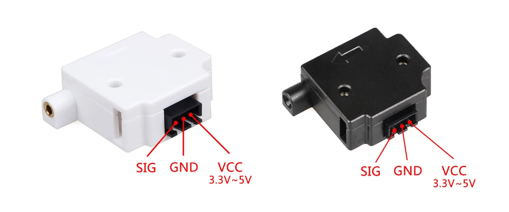 Utilizado con placa Lerdge:Cuando hay material, la luz verde en el módulo mantiene la iluminación. Y cuando el material se agota, la luz verde se apaga, luego la placa base ejecuta la operación de comando de pausa, después del reemplazo del material, puede continuar imprimiendo.Cableado: Conecte el módulo al puerto del sensor M en la placa base.
