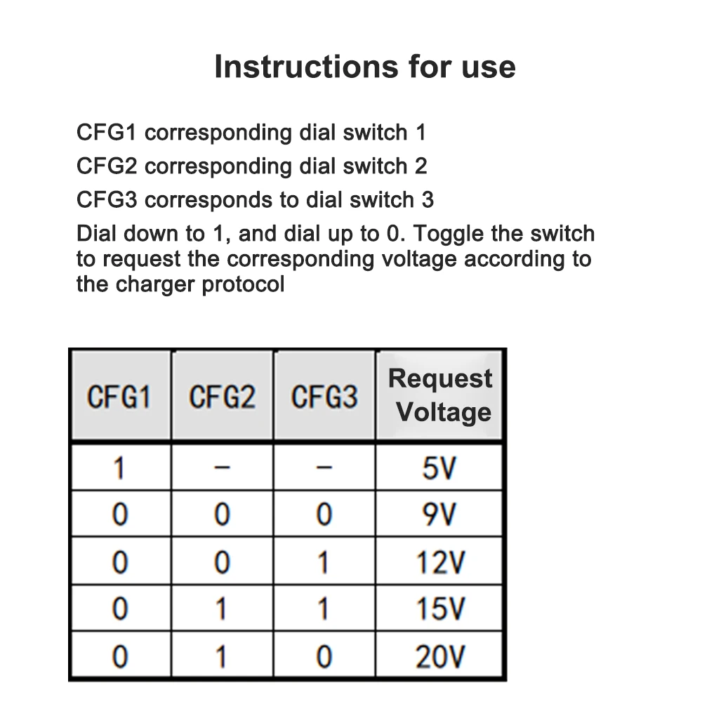 Voltee el interruptor para solicitar el voltaje correspondiente según el protocolo del cargador.