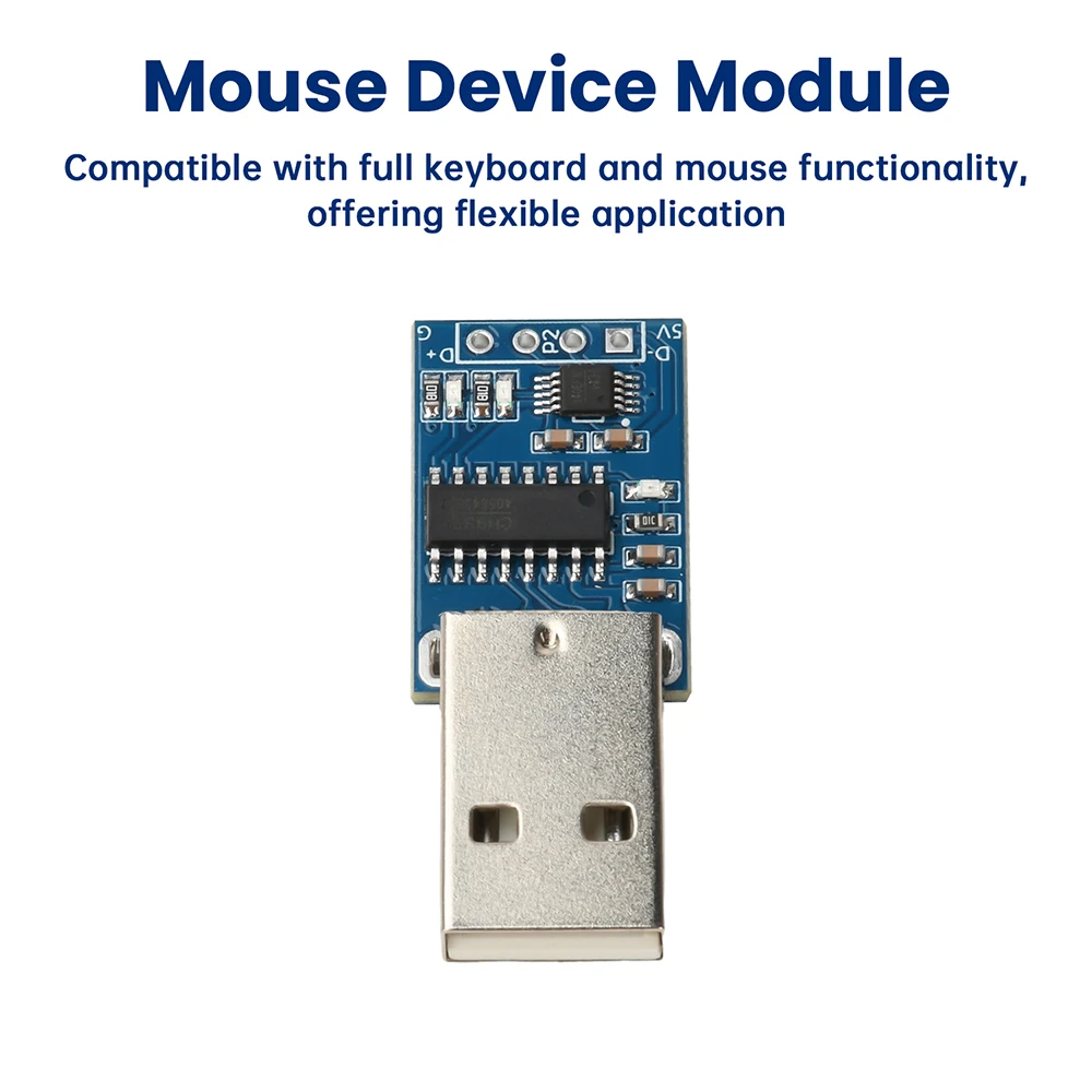 El módulo de teclado y mouse USB a HID utiliza chips CH9329+CH340E.Los usuarios pueden utilizar el USB para enviar comandos al módulo, que convierte el USB en comandos serie y luego los convierte en informes HID para enviarlos a la computadora.No es necesario que los usuarios aprendan protocolos complejos de teclado y mouse HID, lo que reduce la dificultad de desarrollo.Este módulo admite cuatro funciones simultáneamente: el teclado USB incluye teclas normales y teclas multimedia,
