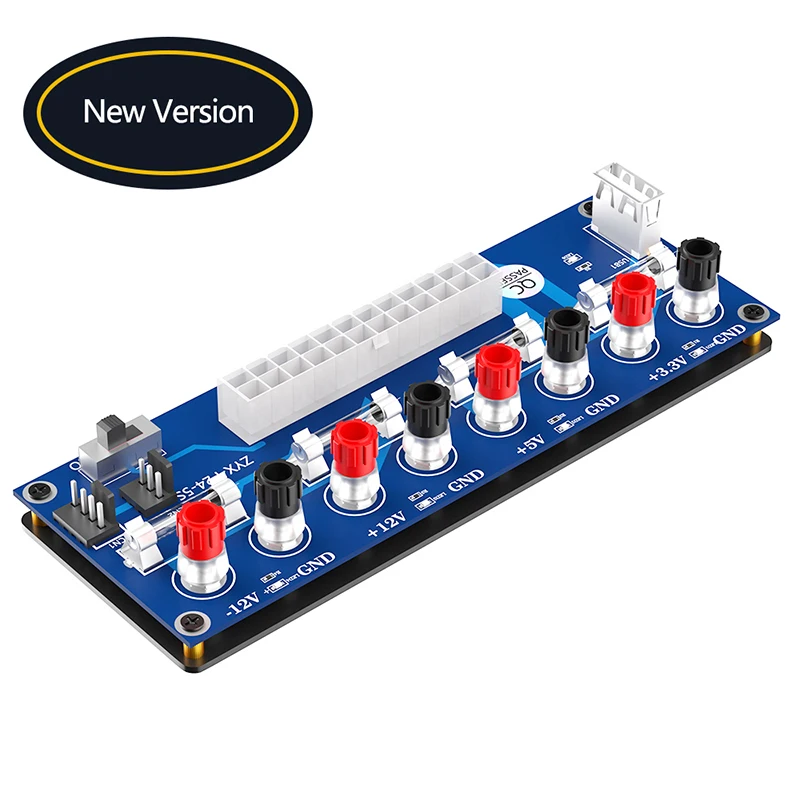 Adaptador de corriente ATX de 20 pines/24 Pines, módulo divisor de fuente de alimentación con puerto USB de 5V, interruptor de alimentación de Base de plástico con aislamiento para PC