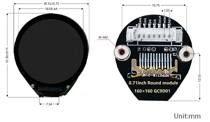 [] Pantalla LCD redonda electrónica EYE de 0,71 pulgadas para Arduino Raspberry Pi ESP32 Pico STM32