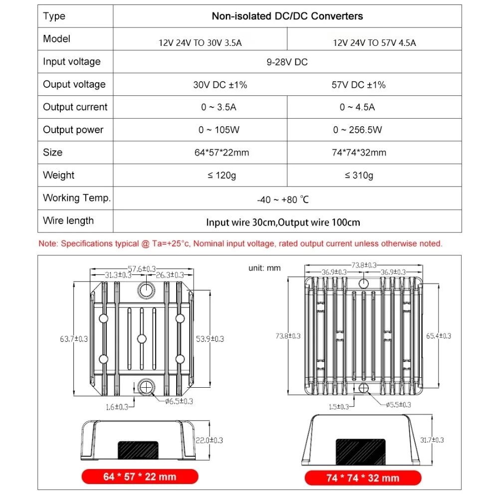 Módulo elevador DC-DC 12V a 30V 3,5A/57V 4,5A Fuente de alimentación 12V 24V a 30V 57V Booster con cable de alimentación DC Starlink Mini enrutador CE