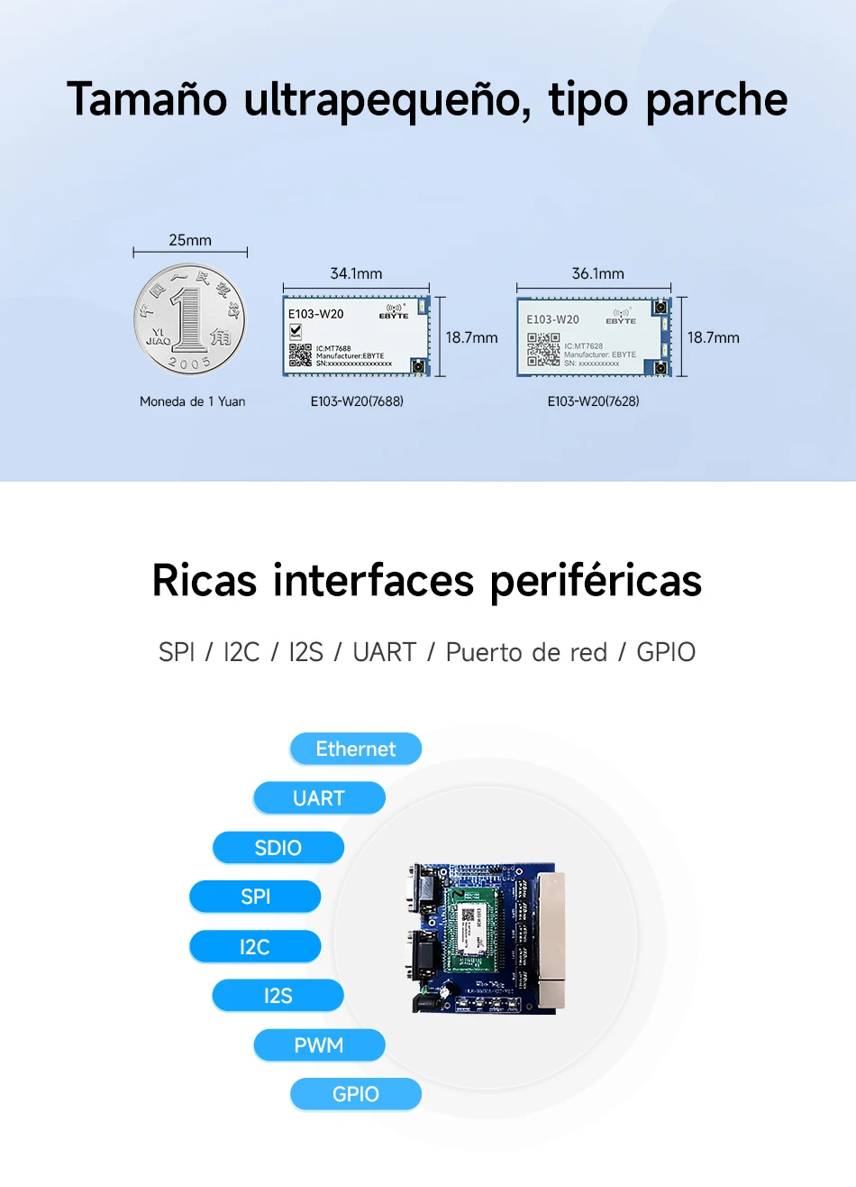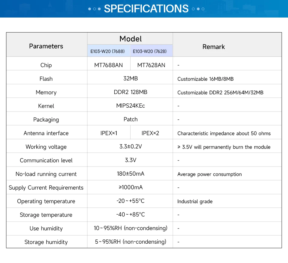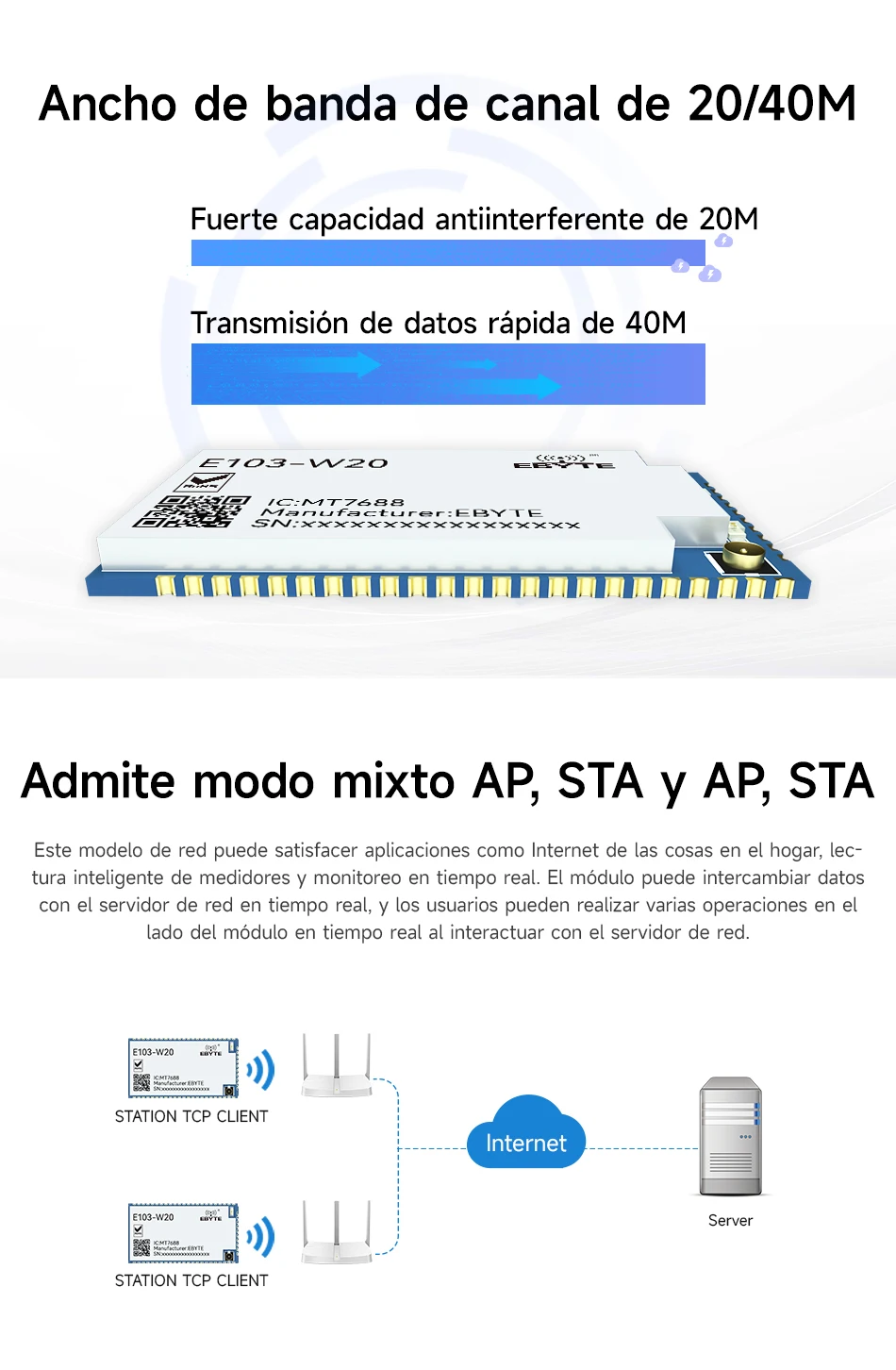Módulo de enrutamiento inalámbrico de puerto serie MT7688AN a Wifi COJXU E103-W20(7688) compatible con módulo SMD de tamaño pequeño Openwrt SPI UART