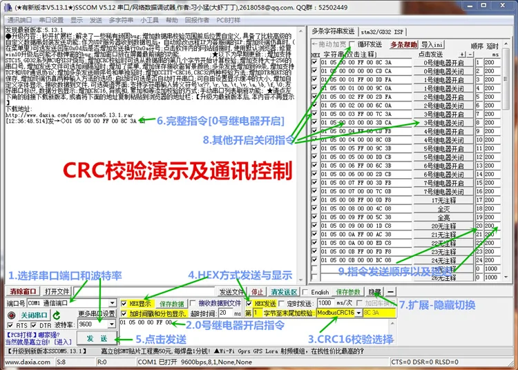 0 Movimiento del relé: 01 05 02 00 07 00 Ce 42 // 700MS=7*100MS=700MS