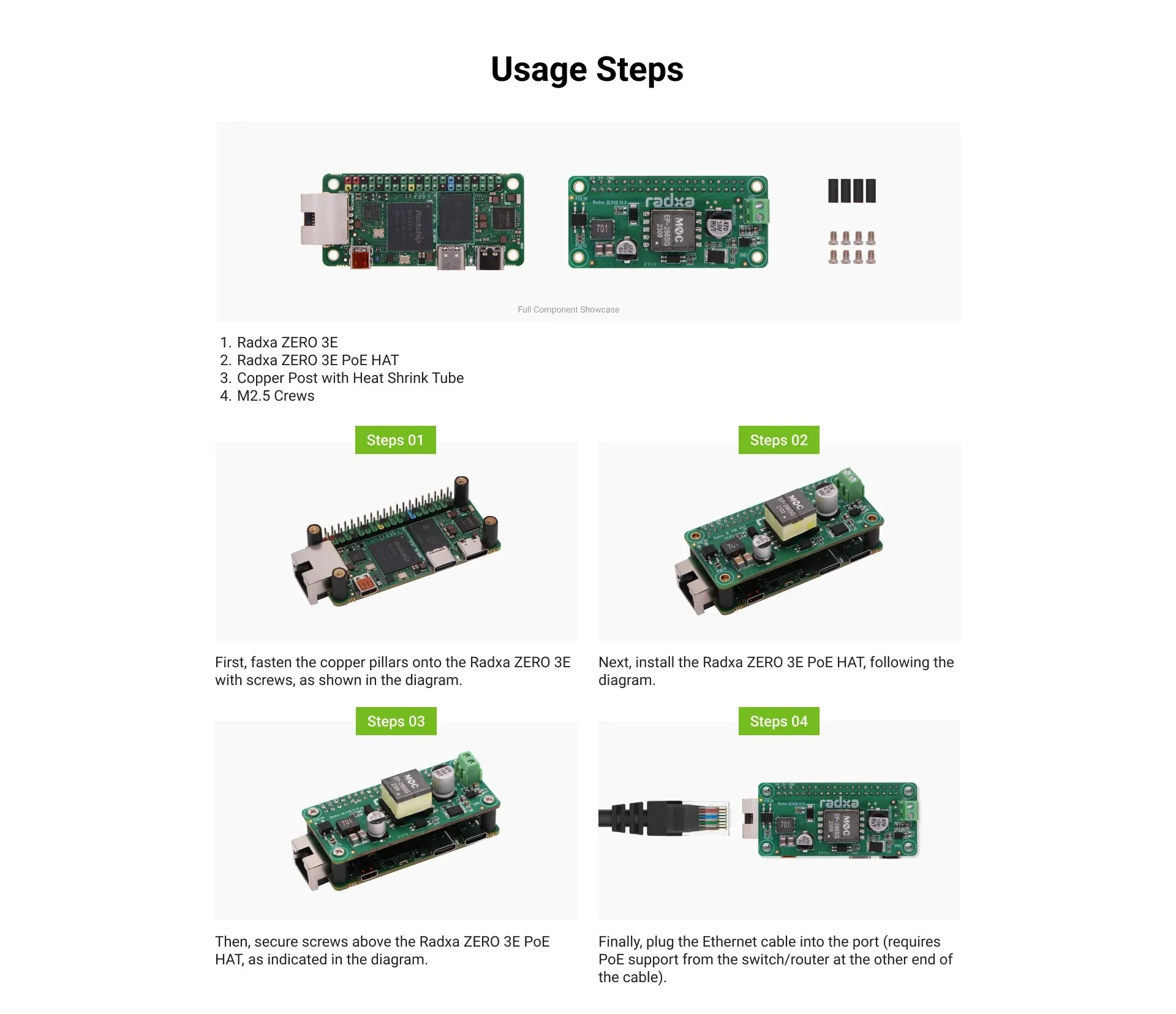 Módulo Ethernet de alimentación Radxa Zero 3E PoE HAT