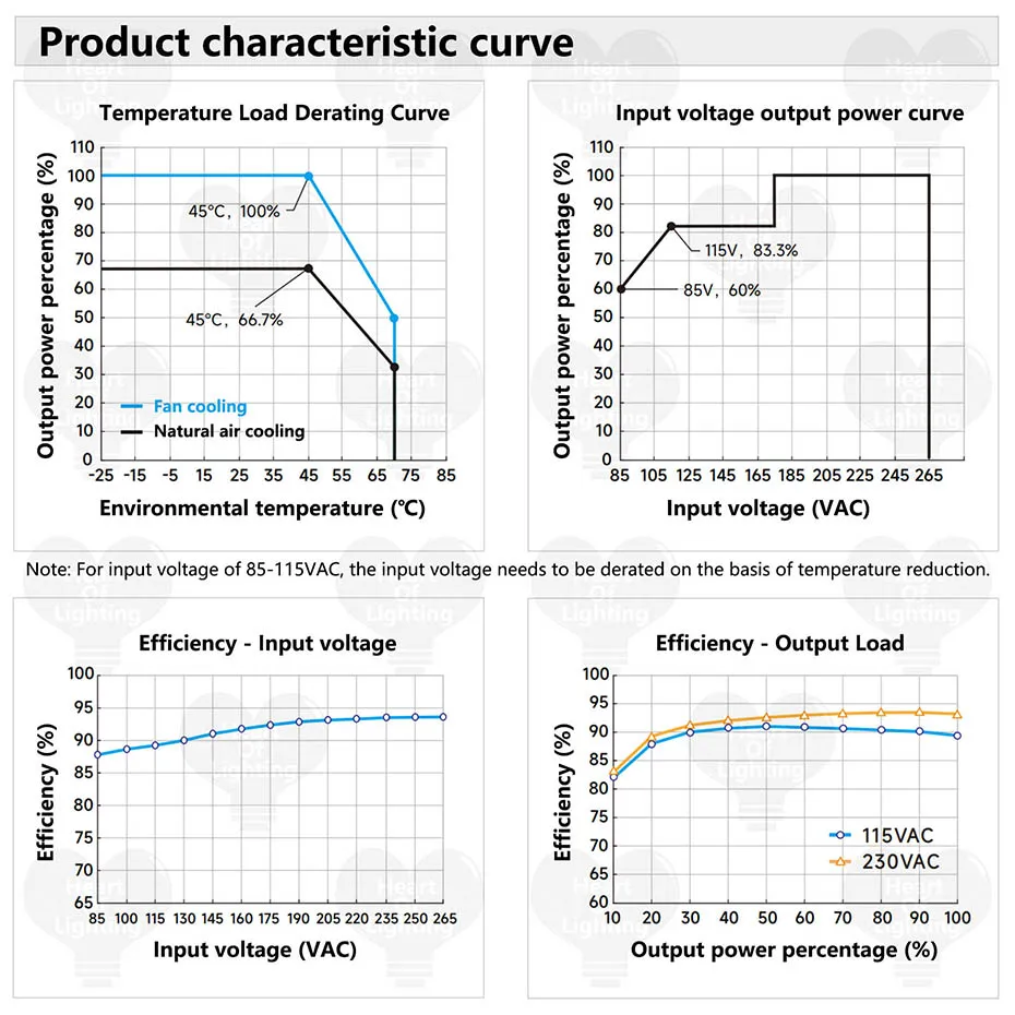 Rango de voltaje: 85-264VAC, 120-370VDC (consulte la curva de reducción de voltaje de entrada para su uso)
