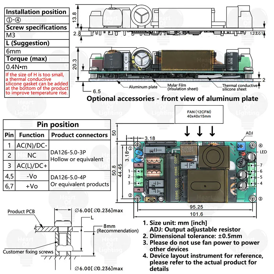Si el tamaño de H es demasiado pequeño, se puede agregar una junta de silicona termoconductora en la parte inferior del producto para mejorar el aumento de temperatura.