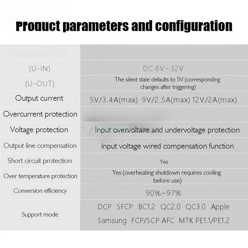 DCP SFCP BC1.2 QC2.0 QC3.0 para iPhone Samsung FCP/SCP MTK PE1.1/PE1.2