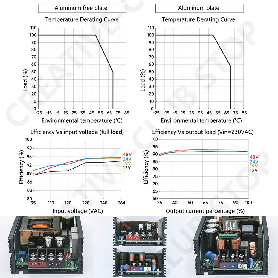 Condiciones de prueba: Refrigeración del ventilador de 20CFM, temperatura ambiente de 25 ° C, entrada de 230VAC, carga completa