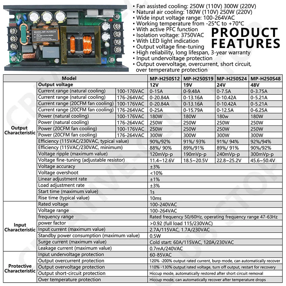 ▪Amplio rango de voltaje de entrada: 100-264VAC