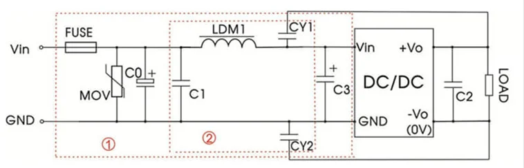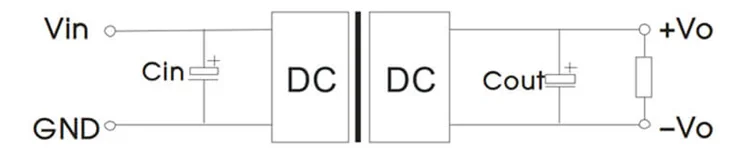 Circuito de prueba recomendado: Cin 100uF, Cout 10UF.Todos los convertidores CC/CC de esta serie son como se muestra en la siguiente figura antes de salir de fábrica.