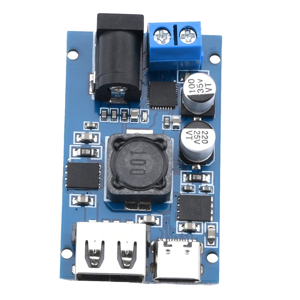 1 x Módulo de fuente de alimentación reductor QC3.0 PD3.0 PPS, convertidor Buck de 8,2 V-32V a 3V-20V, salida de puerto dual USB + tipo C
