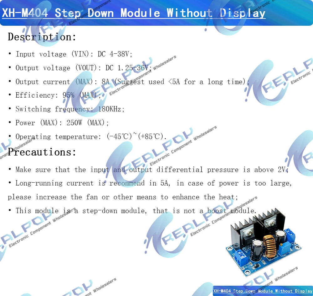 Módulo de fuente de alimentación reductor XH-M404 DC4-40V a DC1.25-36V 8A 200W ajustable XL4016E1 DC-DC regulador de voltaje CC