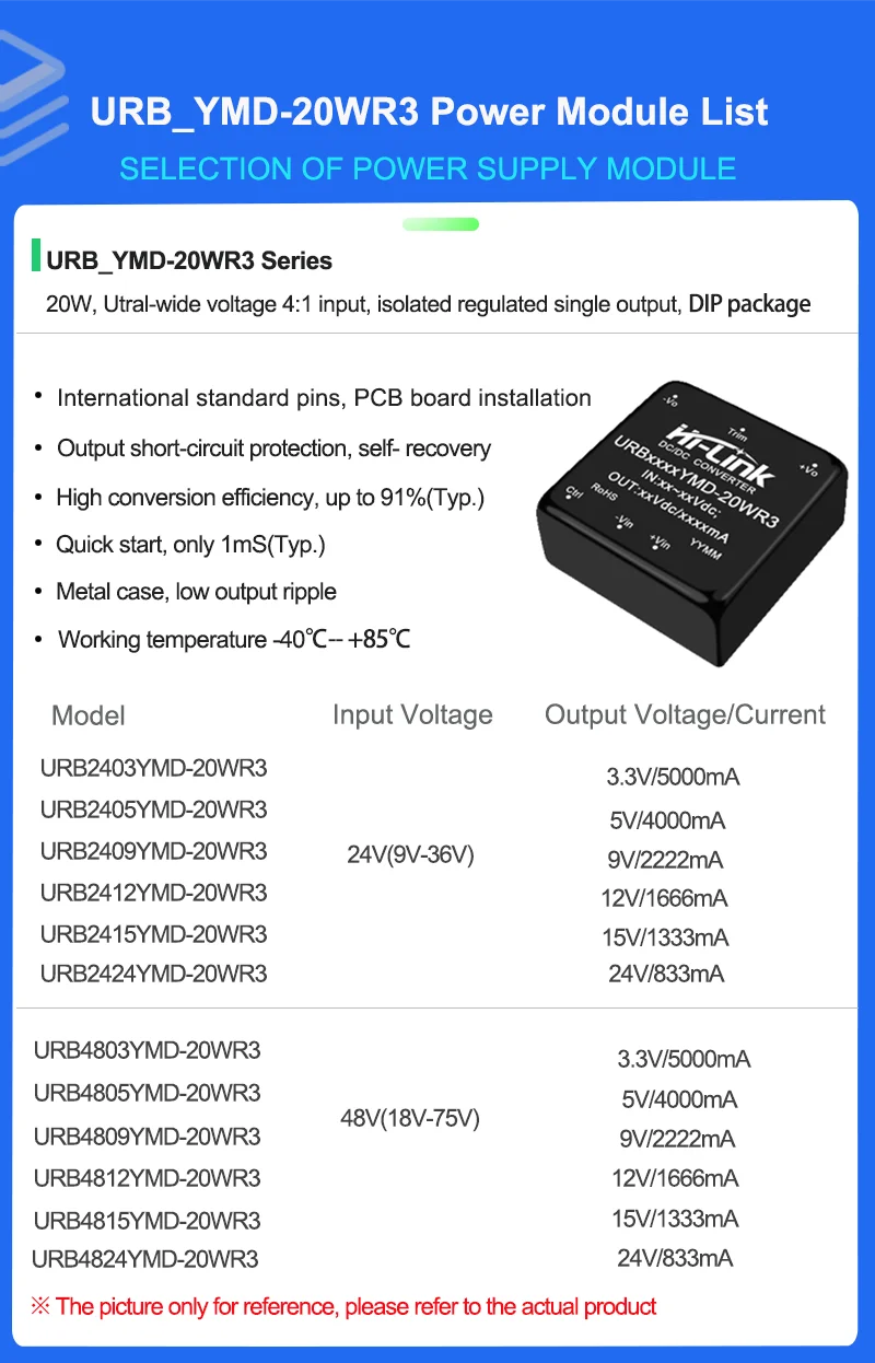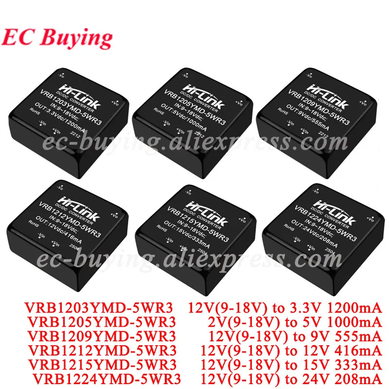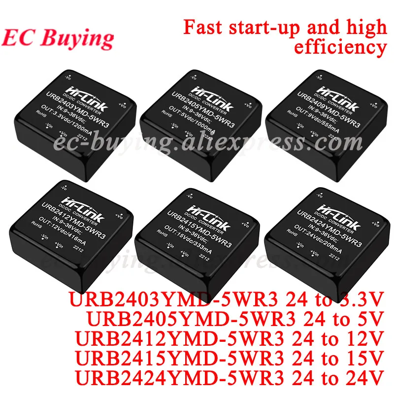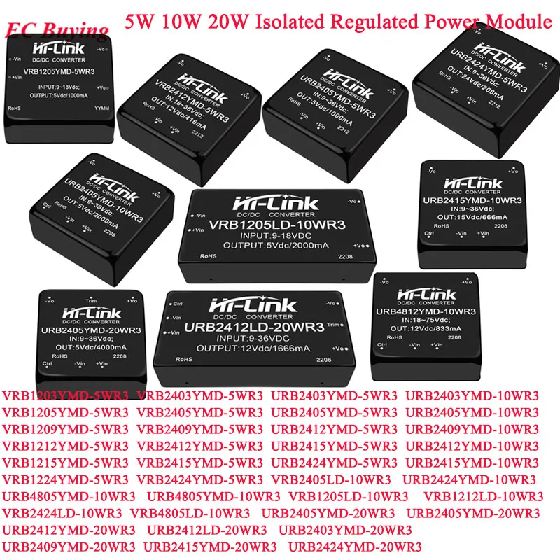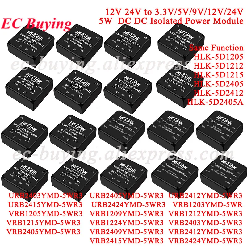 Comprar Módulo de fuente de alimentación regulada aislada DC-DC 20W/10W/5W 48V/24V/12V a 3,3 V/5V/9V/12V/15V/24V URB4812YMD VRB1205YMD URB2412YMD
