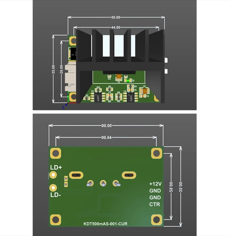 Módulo de fuente de corriente lineal alta KDT500mAS-001, controlador LED con controlador láser, fuente de corriente controlada por voltaje, corriente de amplio rango